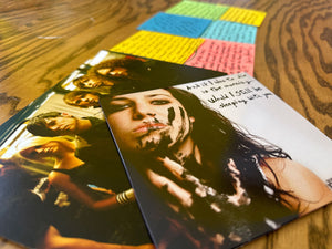 Pensez-y : le plus grand coffret coûte 175$, et il comprend 4 vinyles que nous vendons normalement 35$ chacun, soit 140$ rien que pour les vinyles. Ensuite, nous y avons ajouté un CD/DVD, un t-shirt, un slipmat, 6 posters en sérigraphie, un dossier contenant les paroles d’Alex, un bracelet en pierre de tigre bleu, un sachet de thé lapsang souchong, une bougie, une réplique du pass de tournée, 3 badges de 1 pouce, une carte de téléchargement numérique — le tout dans une magnifique boîte ! Et comme si ce n’était pas suffisant, nous avons instauré une politique d’expédition à tarif fixe il y a 5 ans, afin que vous n’ayez jamais à payer plus selon votre localisation.